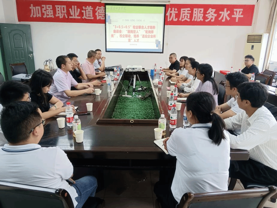 座谈会前,江西秦锐智能科技有限公司、江西盛全新能源技术有限公司、江西华派光电科技有限公司、松岩新能源(全南)有限公司、定南大华新材料资源有限公司、江西汇兴智能装备有限公司、赣州吉锐新能源科技有限公司、江西快手机器人科技有限公司、江西绿萌科技控股有限公司等9家企业进行了宣讲会,并就“3+0.5+0.5”校企联合人才培养的形式和内容、组织安排以及培养方案进行了交流。