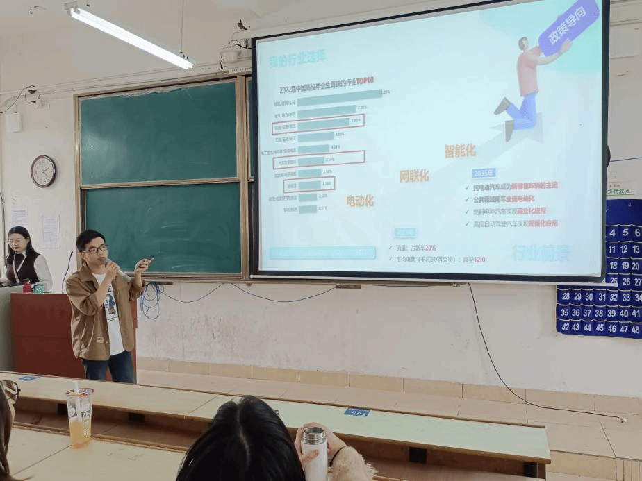 上一届“孚能班”优秀学员代表电气191班江华军同学详细讲述了自己在“孚能班”的学习经历、福利待遇和成长感悟。对孚能科技提供的学习机会表示感激,与孚能科技签订就业协议并愿意为企业创造价值、为学校争光。最后的提问环节,讲座现场反应热烈,互动频繁,同学们纷纷表示深感兴趣和深受启发。