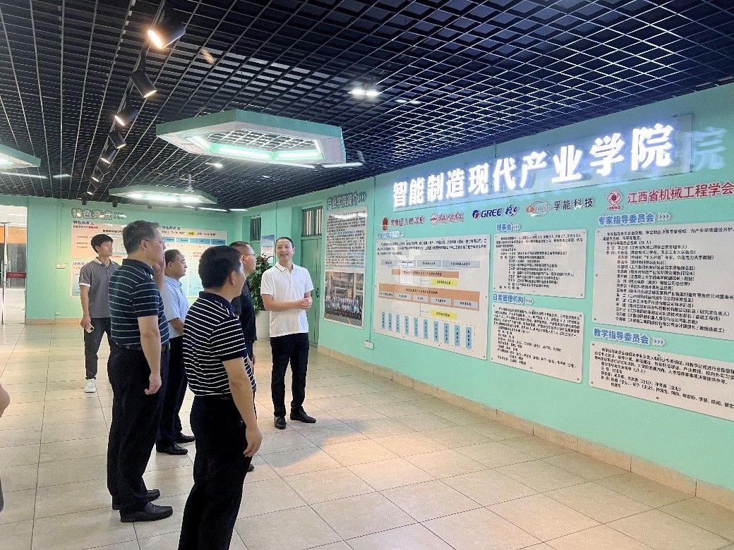 5月27日,江西省教育厅副厅长刘小强一行到智能制造现代产业学院调研指导,米乐mile官网党委书记邱建军,党委副书记、校长李国金,党委委员、副校长左群,党委委员、副校长何锦龙陪同调研,智能制造现代产业学院执行院长刘辉讲解并引导。教务处、米乐mile官方网站相关负责人、格力电器(赣州)有限公司总经办主任洪志勇参加活动。