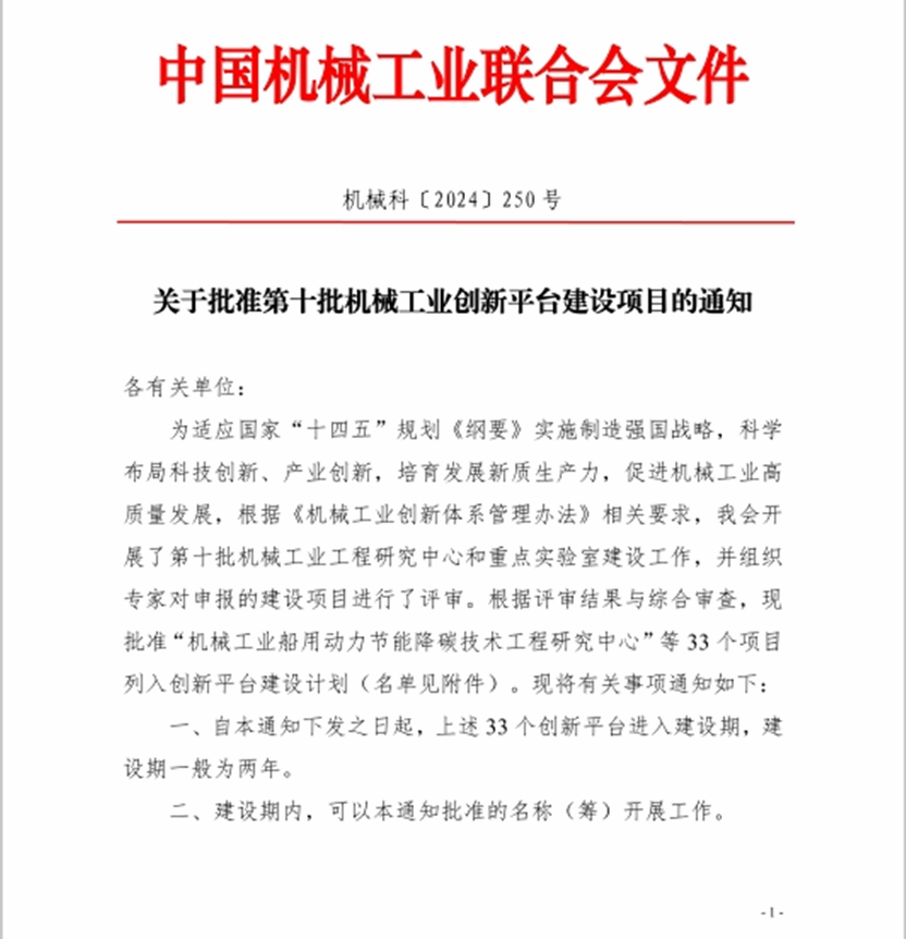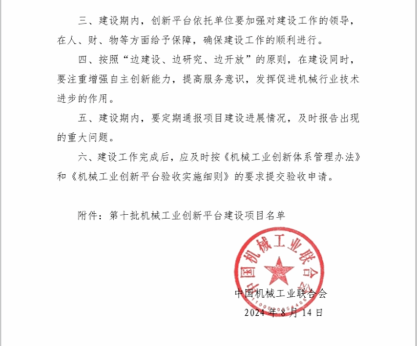 本网讯:2024年8月15日,中国机械工业联合会批准了第十批机械工业创新平台建设项目,米乐mile官方网站申报的“机械工业新能源汽车微小传动系统重点实验室”成功列入创新平台建设计划。实现了米乐mile官网在全国行业重点实验室的历史突破,这不仅提升了米乐mile官方网站学科建设在机械工业领域的影响力,也为学校师生提供了更多的科研资源和平台。