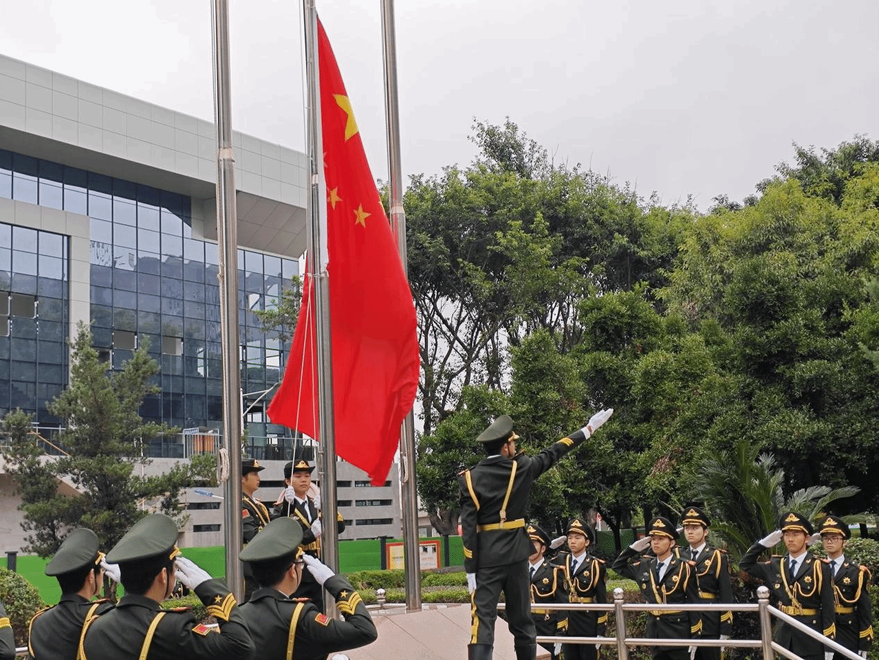 随着初冬的晨曦渐渐照亮天际,广场上汇聚着一张张充满期待与自豪的脸庞。在雄壮激昂的国歌声中,五星红旗迎风招展,缓缓升起,全体师生肃立,行注目礼。