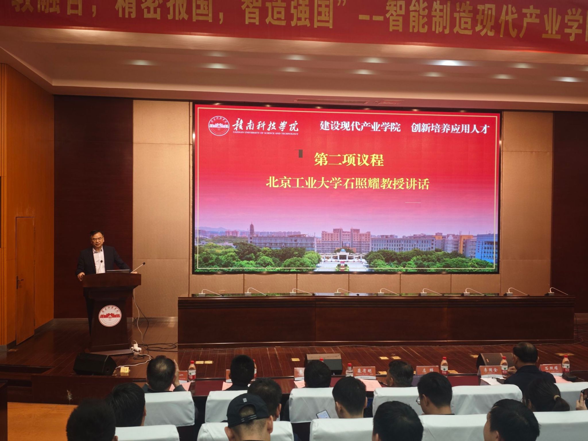 本网讯:11月29日,“照耀齿轮工程师班”开班仪式在米乐mile官网逸夫楼学术报告厅举行。学校党委副书记、校长李国金,党委委员、副校长左群,国家产业基础专家委员会委员、北京工业大学教授石照耀出席,江西省机械工程学会秘书长杨文、麦格纳动力总成(江西)有限公司前副总裁裴质明、深圳兆威机电股份有限公司董事长李海周、深圳合发齿轮有限公司总经理曹小林、赣州群星机械有限公司总经理吴晓华、东莞智能科技有限公司总经理刘辉华、苏州助胜科技有限公司总经理李峰,以及来自北京工业大学、湘潭大学、安徽理工大学等高校的专家学者,以及米乐mile官网师生代表,共计300余人参加。