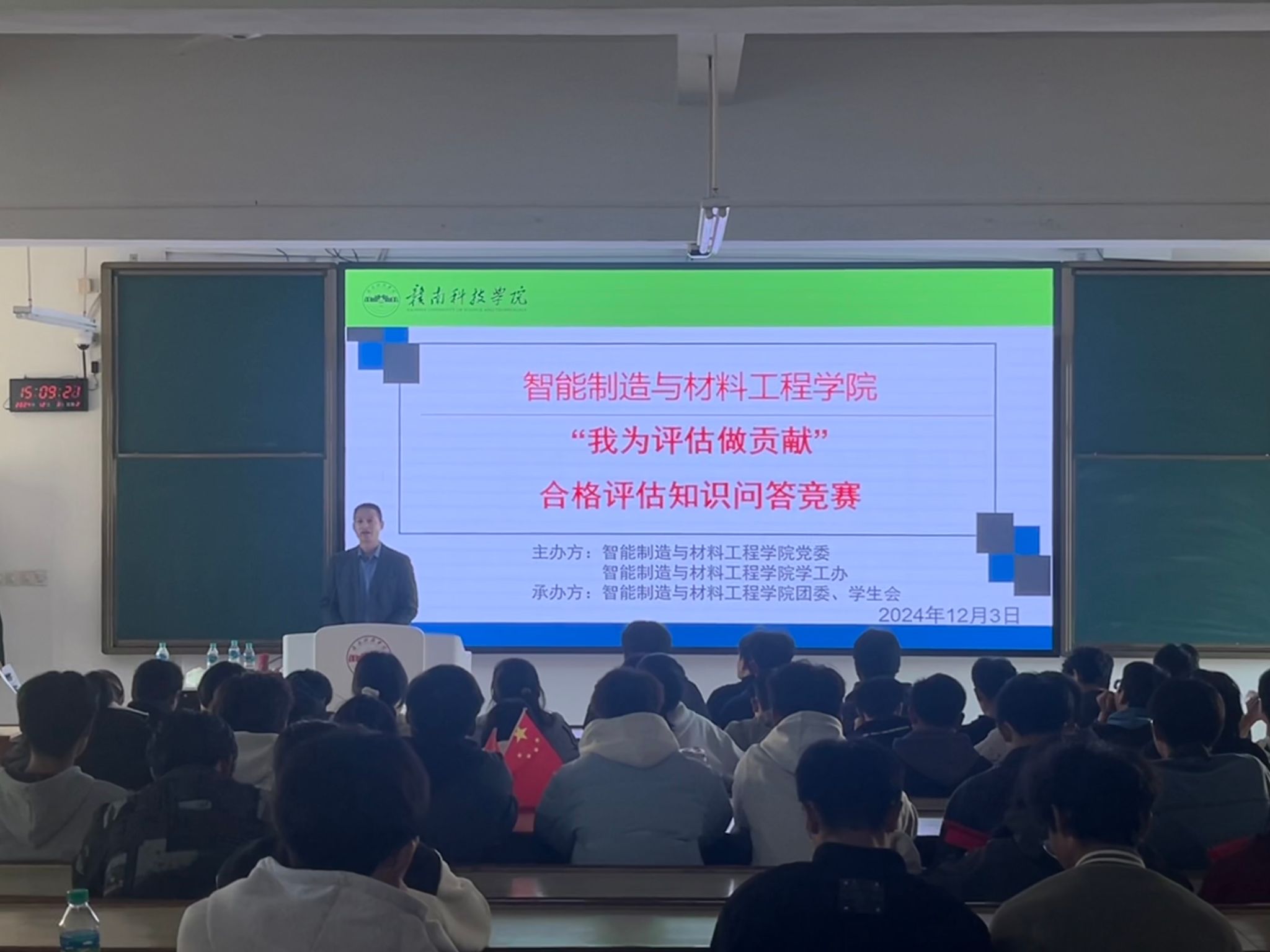 随后,团委负责人卢名亮老师详细介绍了竞赛的规则及流程。本次知识问答竞赛覆盖了学校的教学理念、科研成就、学生管理、校园文化等多个方面,旨在通过趣味横生的问答形式,让师生在轻松愉快的氛围中增进对学院各项工作的了解,同时提升团队协作与知识应用能力。