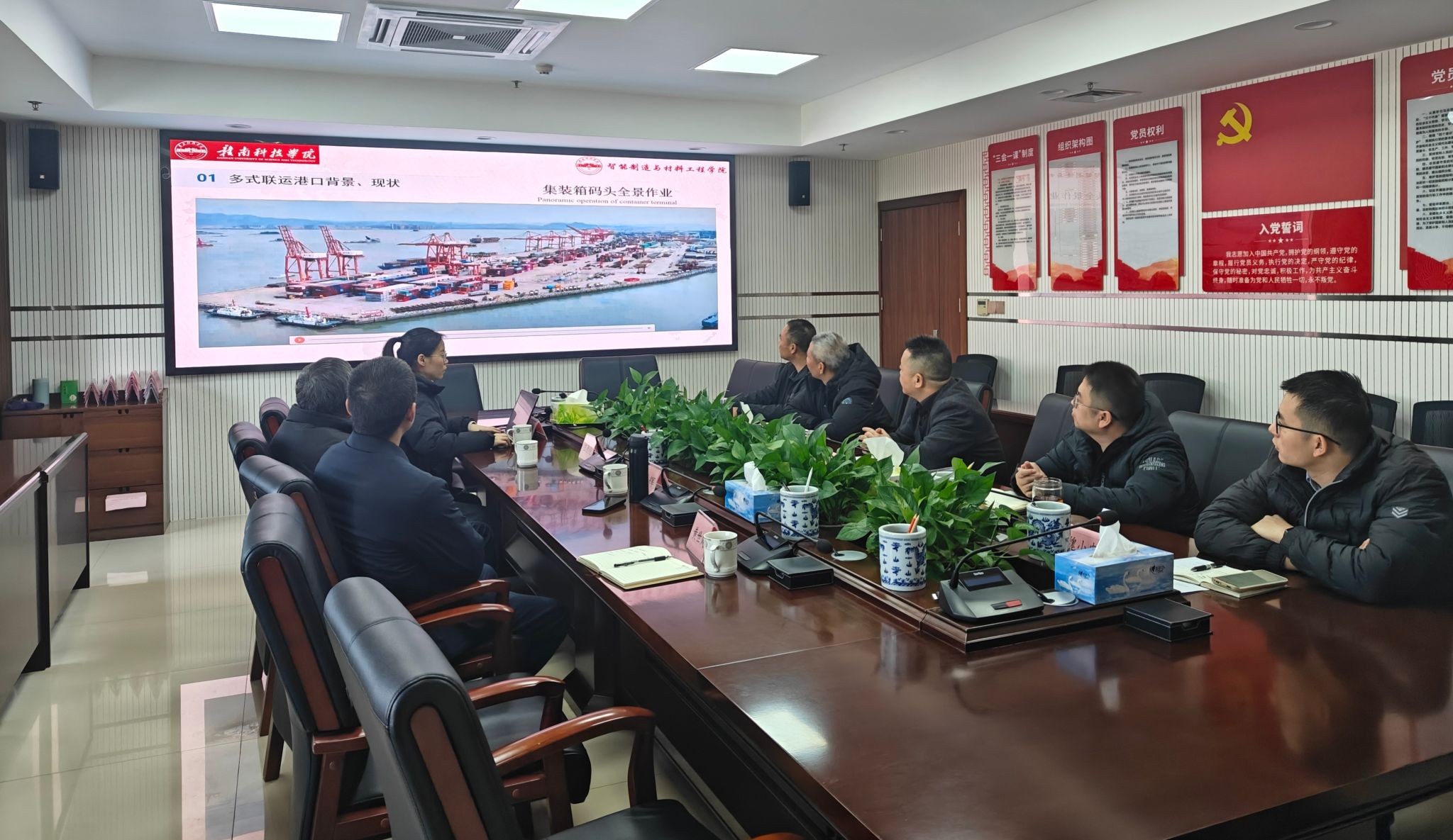 在交流会上,针对学院如何强化“三链融合”、推进“产学研一体化”等问题,刘辉作了细致阐述。刘辉强调,学院期望为赣粤大运河赣州段规划建设贡献力量,助力赣州多式联运发展。王德伦教授与钟祾充博士介绍了学院在智能制造与材料工程领域的科研成果,尤其是港口建设,为双方合作提供了坚实的技术支撑。