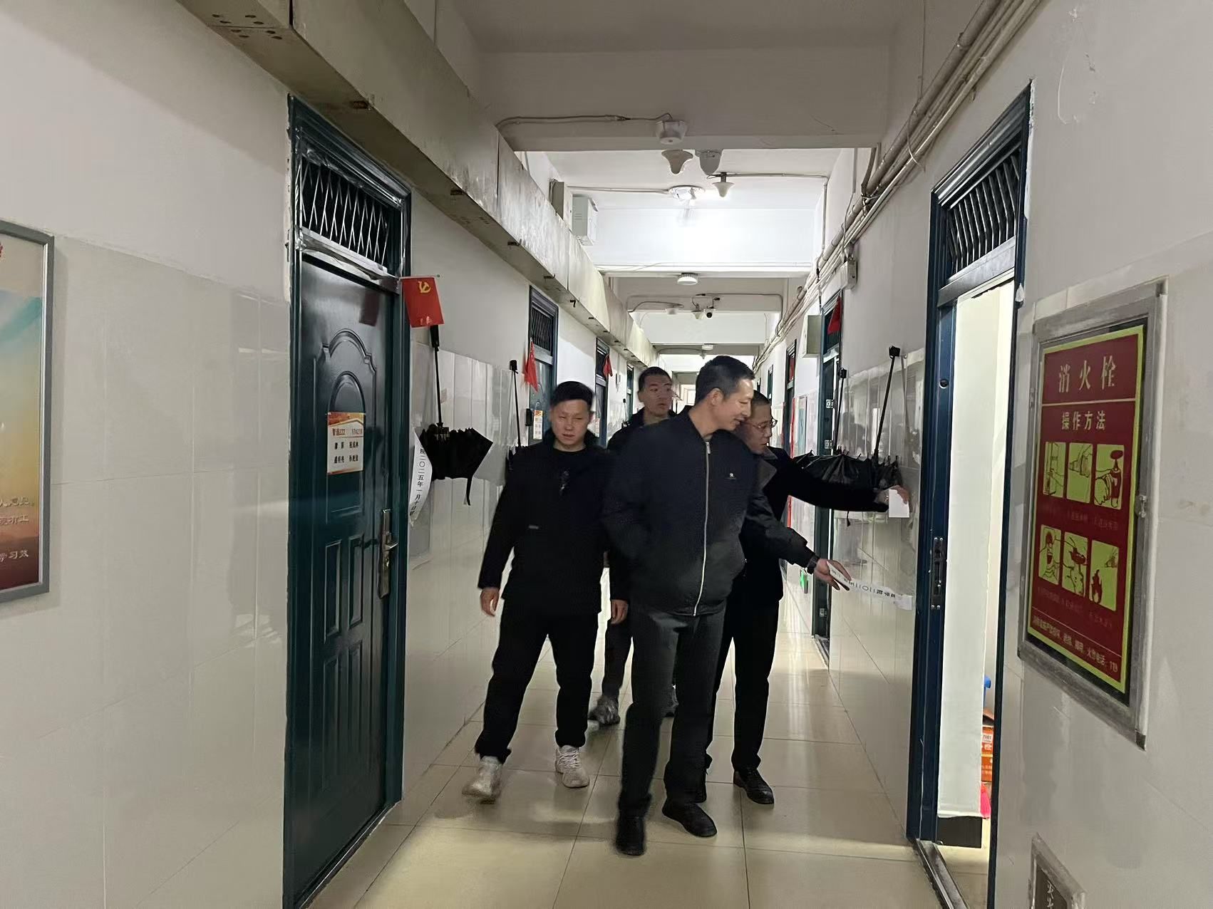 在用电安全方面,检查小组逐一排查了宿舍内的插座、灯具、空调等用电设备,确保无漏电、短路等安全隐患。老师们还特别强调了禁止使用大功率电器及违规电器的重要性,要求同学们严格遵守学校规定,确保用电安全。同时,刘辉详细检查了宿舍的消防设施是否完好、疏散通道是否畅通,并现场演示了灭火器的使用方法,向同学们普及了防安全知识。