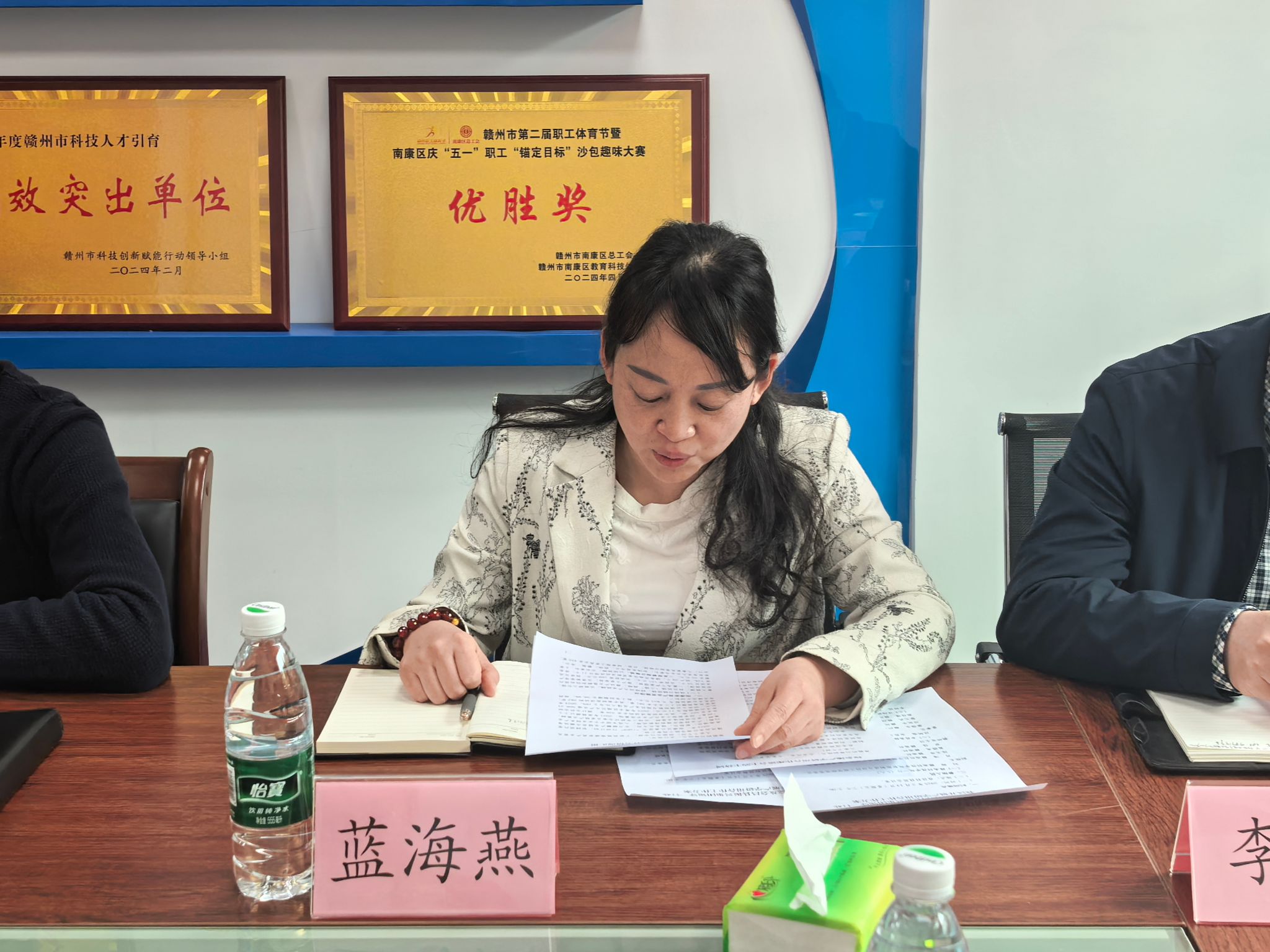 洽谈会上,蓝海燕首先介绍了南康家具产业发展情况。她指出,南康区拥有家具生产企业7390家,2024年产业集群总值达2849.62亿元,但在智能制造水平和数字化转型方面仍存在明显短板。
