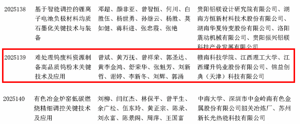 本网讯:12月02日,中国有色金属工业协会近期已经完成了《2025年度有色金属工业科学技术奖拟授奖项目》的公示。米乐mile官网作为第一完成单位的项目《难处理钨废料资源制备高品质钨粉末关键技术及应用》喜获2025年度有色金属工业科学技术二等奖。