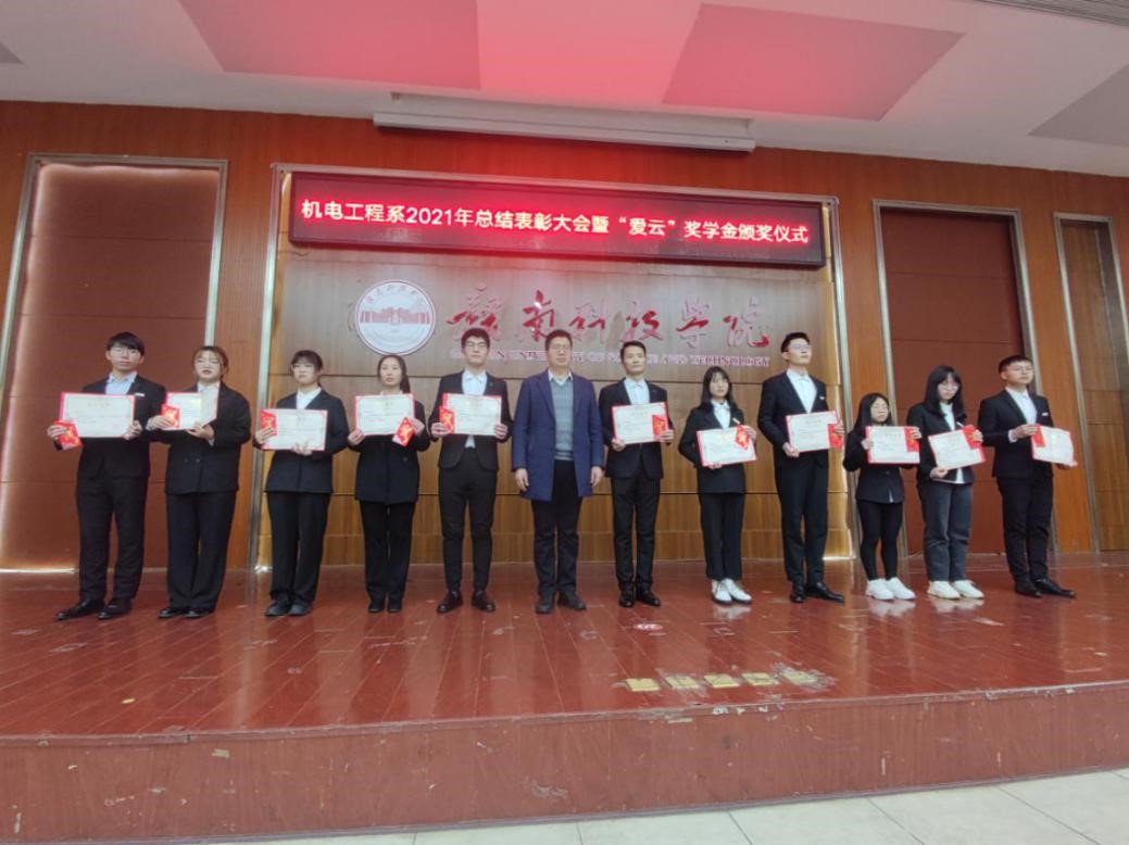 本网讯:2021年12月28日下午,为庆祝中国共产党建党100周年,米乐mile官方网站成立元年,发挥先进典型的榜样示范引领作用,用先进典型感召、激励广大青年学子,引导广大学子勤奋学习、敢于创新、积极进取,机电工程系在逸豪学术报告厅举行第一届“爱云”奖学金颁奖仪式,校过渡期管委会委员、应用科学学院副院长薛香恒、付玉华,机电工程系主任刘辉、系党总支书记朱根松、系副主任关开荣出席,颁奖仪式由机电工程系副主任肖志华主持。