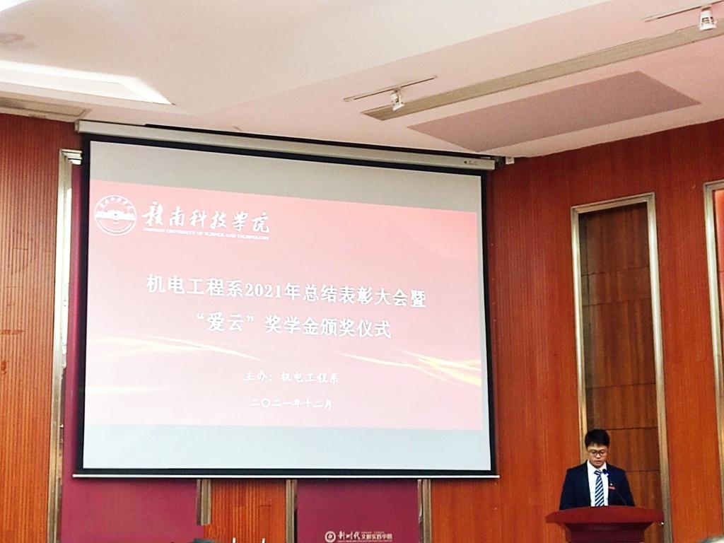 大会伊始,机电工程系副主任关开荣宣读了《关于表彰2021年米乐mile官方网站“爱云”奖学金获得者的决定》。