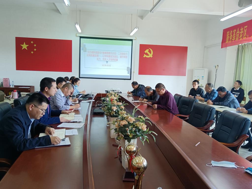 本网讯:为深入学习贯彻习近平新时代中国特色社会主义思想,认真贯彻省委书记易炼红同志在省委教育工作领导小组2022年第一次全体会议上的讲话精神,进一步解放思想,统一认识,明确方向,深化改革,推动学校教育事业高质量发展,5月3日,机电工程系在主教820会议室开展“我为赣科建新功”教育思想讨论会,此次讨论会由机电系主任刘辉主持,系领导班子成员、各专业负责人和教师代表参加了此次会议。