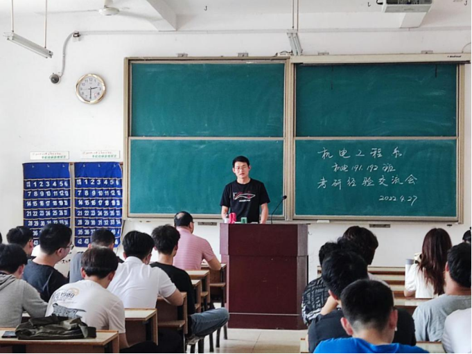 在机电专业的考研交流会上,刘伟老师邀请了机电专业的学长学姐来分享考研经验。雷卉学姐针对工科生普遍英语水平较弱的共性,重点分享了自己备考英语的经历。她还特别建议平时多读英语书,多看英文报,多欣赏英语电影是积累的很好办法。舒申学长认为研究生备考,首先要拥有一个良好的心态和健康的身体。其次,找到自己学习的方法和节奏,每一个学习阶段都要根据自己的学习进度制定复习计划。徐庆学长则结合自己的考研经历同学们指点迷津,既就报名、笔试、复试等考研的各个阶段做了详细的讲解,也就考研各科的复习方法、考研计划、答题技巧、备考心态的调整进行了详细的讲解。