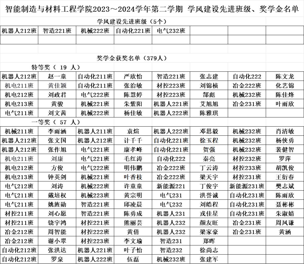 根据学校关于做好2023-2024学年第二学期学生综合素质测评及学生综合奖学金评定工作的通知》文件要求按照《米乐mile官方网站学生综合素质测评评定补充细则》有关规定,经学生本人申请班级认定评议小组评议、学院认定评审领导小组审定拟确定机器人212等5个班级获得学风建设先进班级称号,赵一童等379名学生获得综合奖学金。现予以公示,公示期为:20241022日到1024,公示天。如有异议,请在公示期内与学院反映。