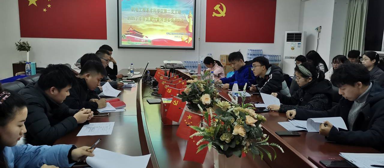 2020年12月10日,机电系本科生第二党支部在主教8楼党员活动室开展关于2020年下半年接收中共预备会议,支部书记孔靖宇及全体党员参加。
