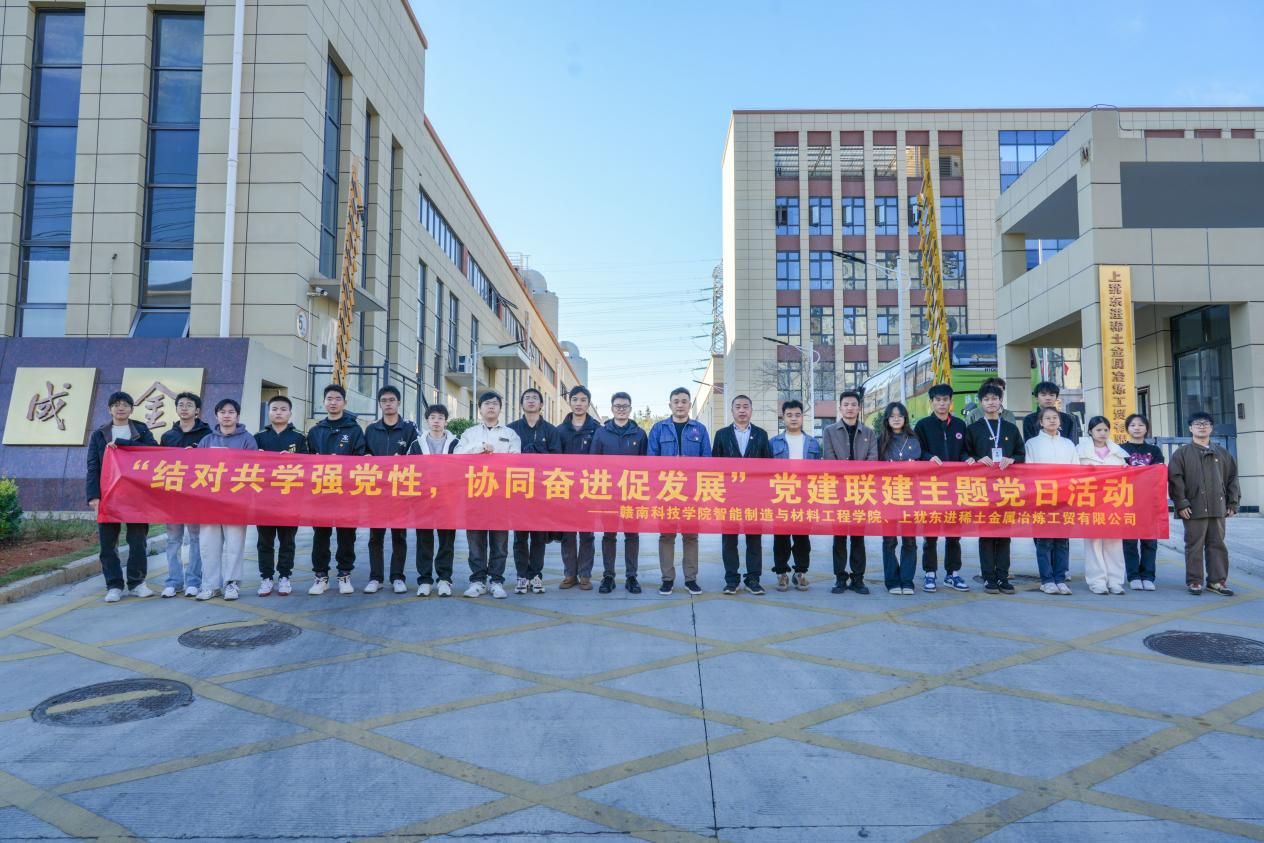 本网讯:11月20日下午,米乐mile官方网站党委副书记朱根松等一行23人,赴上犹东进稀土金属冶炼工贸有限公司,联合开展以“学全会精神,谋事业发展——结对共学强党性,协同奋进促发展”为主题的党日活动。东进稀土金属冶炼工贸有限公司负责人罗林生等人参与了本次活动。双方通过共学、研讨、实地观摩等形式,推动党建与业务深度融合,探索校企合作新路径。