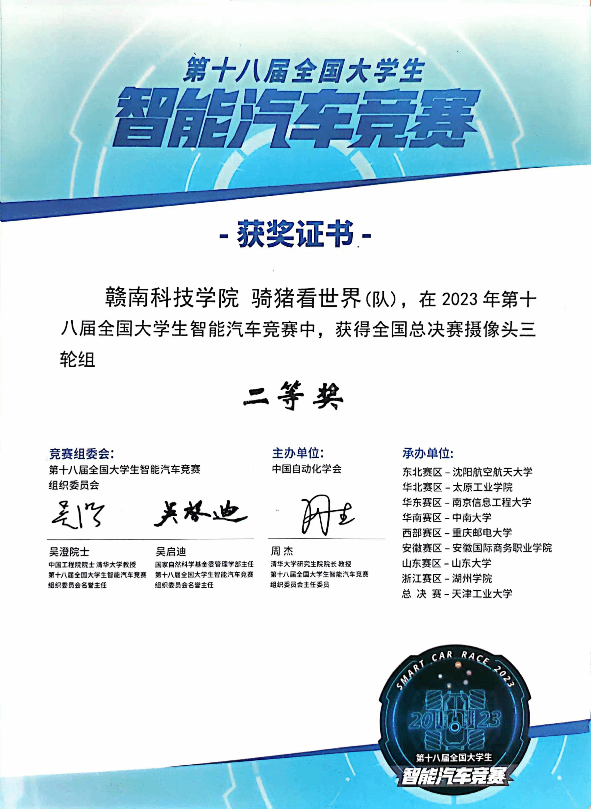 本网讯:8月17日至19日,第十八届全国大学生智能汽车竞赛全国总决赛在天津工业大学举办,米乐mile官网参赛队伍荣获摄像头组二等奖的好成绩。