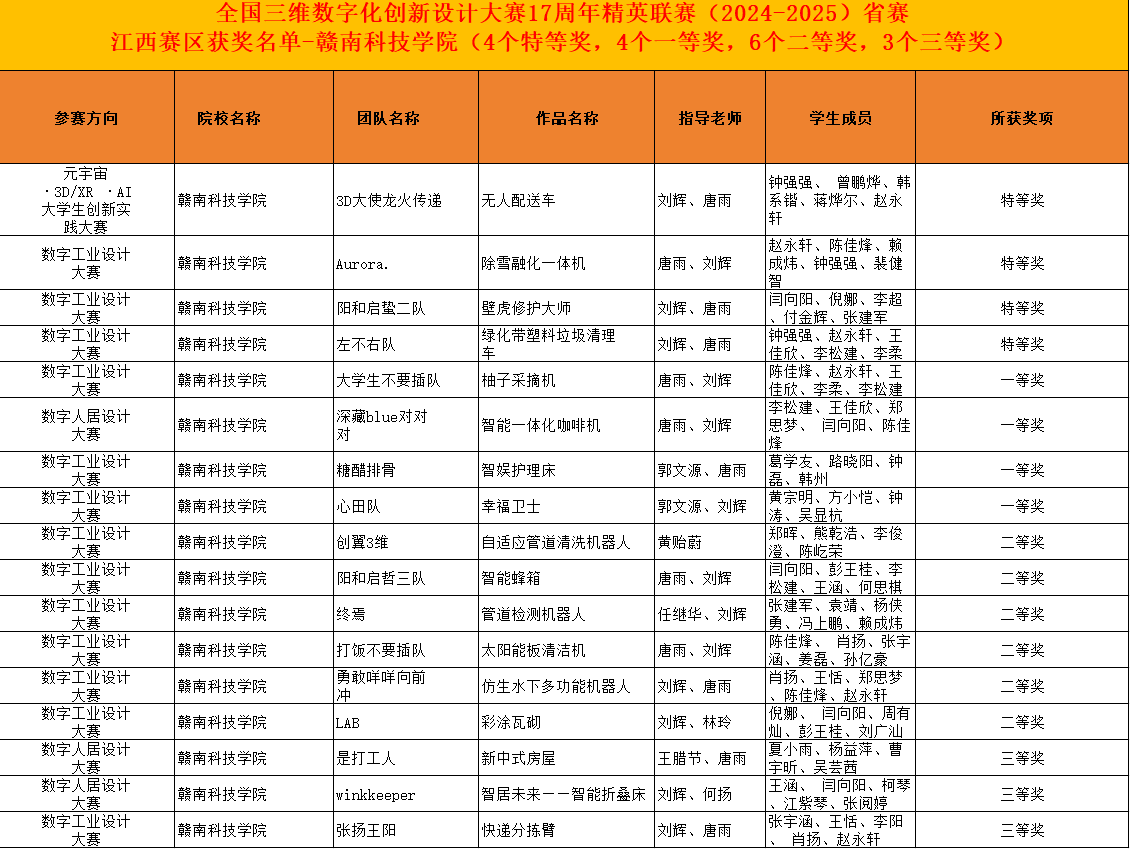 本网讯:6月6日,第十七届全国三维数字化创新设计大赛省赛圆满落幕。米乐mile官网米乐mile官方网站的学子们凭借出色的表现以及多位带队老师的悉心的指导,在激烈的竞争中脱颖而出,荣获特等奖四项、一等奖四项、二等奖六项和三等奖三项的优异成绩,充分展现了米乐mile官网学子的创新实力与团队精神。