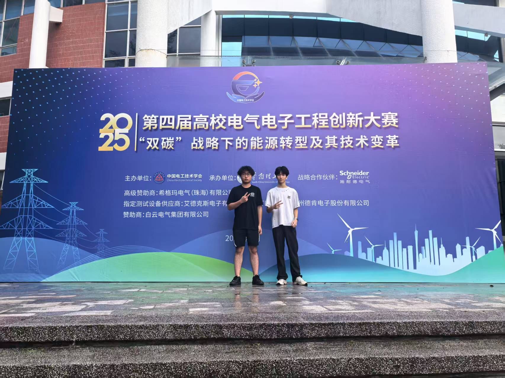 本网讯:第四届高校电气电子工程创新大赛已于2025年8月12日落下帷幕。在胡昊明、王腊节等老师的指导下,由刘皓程、汪泉、陈梁等同学组成的参赛队伍参加由中国电工技术学会举办的第四届高校电气电子工程创新大赛。参赛队伍凭借着扎实的工程专业理论基础和良好的团队协作能力,高质量地完成了比赛,“AI助力工业控制智能化”和小型破窗式室内火场监测无人机”分别获省赛三等奖和全国赛一等奖佳绩,王腊节老师荣获优秀指导老师称号。