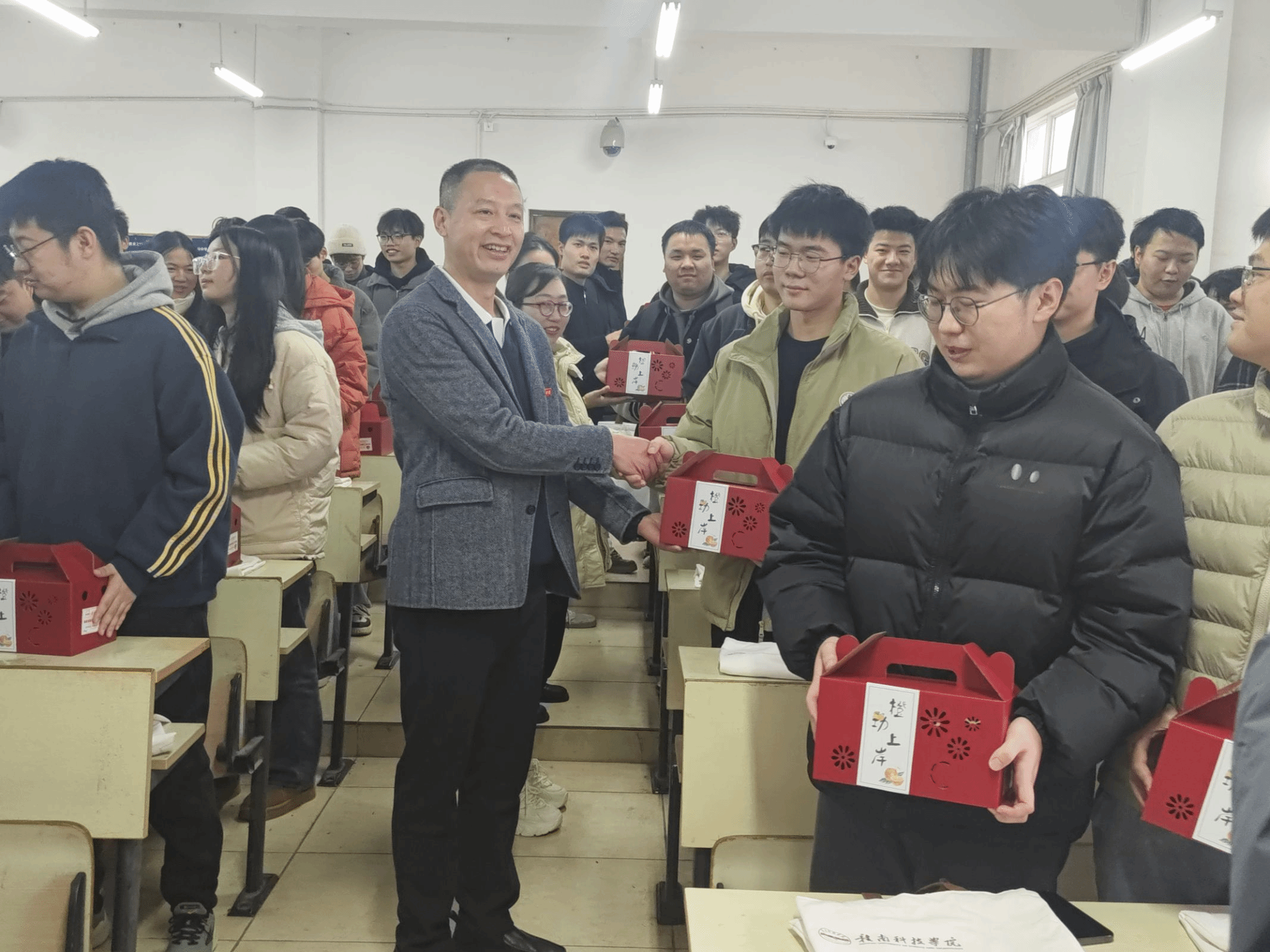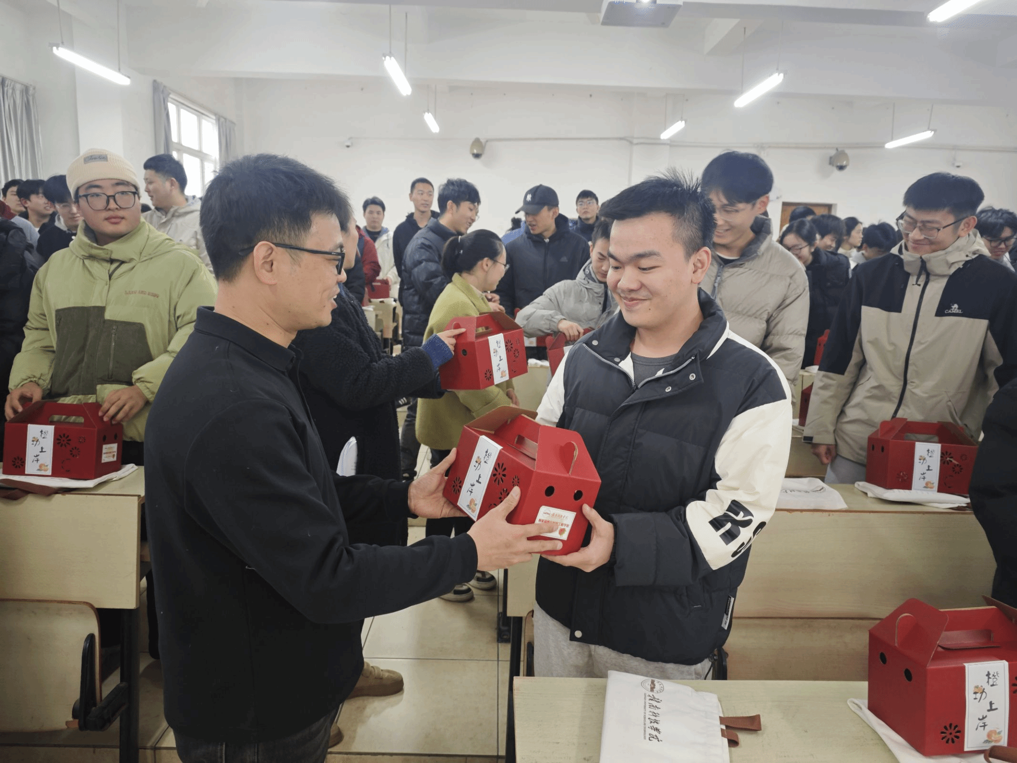 为了表达对考研同学们的关心和支持,学院全体老师特意准备了寓意着“心想事成,大吉大利”的脐橙和满载祝福的考研大礼包。一份份礼物传递着学院对同学们的深厚情意和美好祝愿,让在场的每一位同学都感受到了来自学院的温暖和力量。