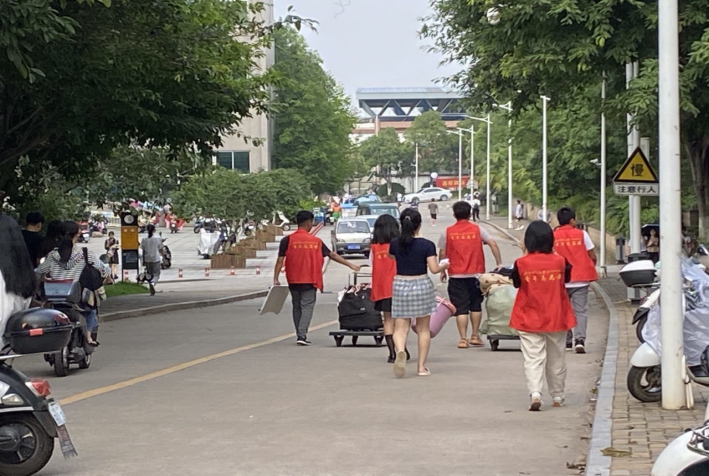 值得称赞的是机电系的女生不怕苦,不怕累,主动请缨加入志愿服务队。虽然汗水浸湿了我们的衣服,烈日暴晒着我们的身体,但却阻挡不了我们想要为学长学姐们服务的热情。