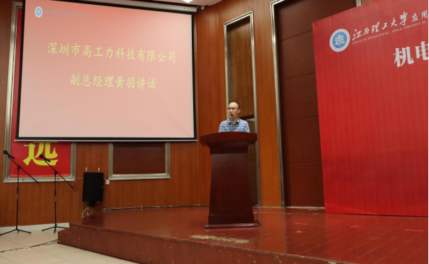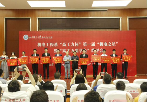 本网讯 6月1日下午,江西理工大学应用科学学院“高工力杯”第一届“机电之星”暨“高工力奖学金”终评会在我院逸豪学术报告厅隆重举行。深圳市高工力科技有限公司副总经理,我院深圳校友会会长,机电工程系自动化专业2005届校友黄羽、院长何锦龙、副院长薛香恒、机电工程系党总支书记朱根松、系主任刘辉、副主任肖志华、副主任关开荣、机电工程系各教研室教师评委、学生评委以及二百余名学生观众参加了终评会。此次终评会由机电工程系主办,深圳市高工力科技有限公司赞助。