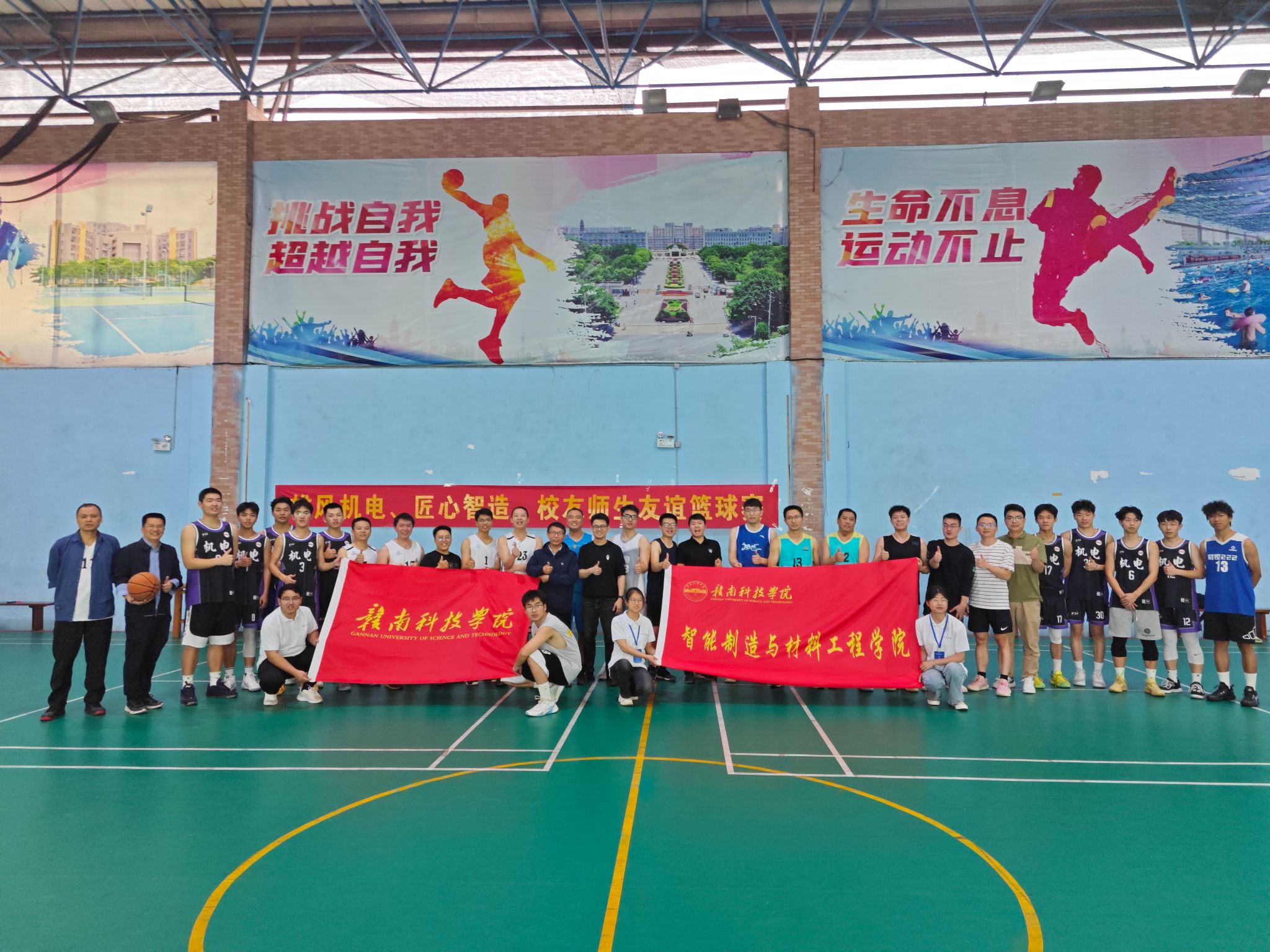 本网讯:为丰富返校校友文娱活动,促进师生情谊,5月3日下午15:00,米乐mile官方网站组织师生在风雨球场举行了一场师生篮球友谊比赛,来自五湖四海的校友、在校师生参加了这次比赛。