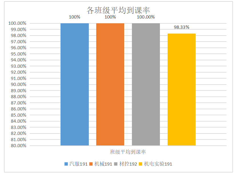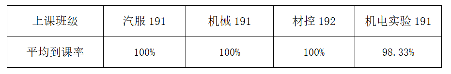 从上交数据情况来看,汽服191,机械191和材控192班同学到课率较