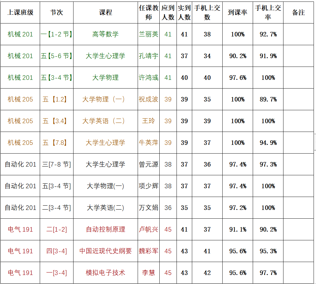 一、第十三周抽查到课率情况通报