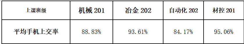 由上表看出材控201班,冶金202班手机上交率较