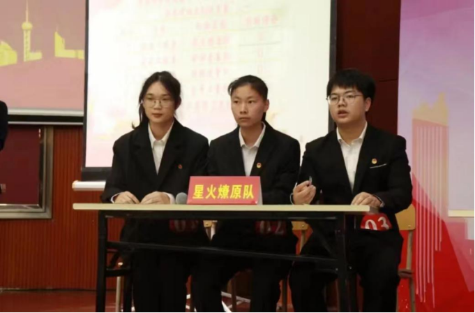 在加赛环节,比拼愈加激烈,大家争先恐后的抢答题目,虽然比赛在紧张地进行着,但三个队伍的选手们仍然保持冷静,稳扎稳打,展现了扎实的知识储备。经过15道题目的加赛环节,得出最终的比赛结果:机电工程系星火燎原队荣获一等奖、经济管理系青年力量队荣获二等奖、人文科学系强国追梦队荣获三等奖。